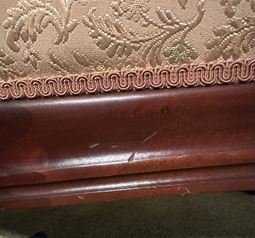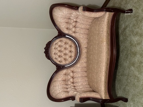 Twin pink couches. They are a lighter pink than th pictures show. Perfect condition, with a few small flaws shown in pictures. Have been kept inside a smoke free, pet free home. Will sell separately.