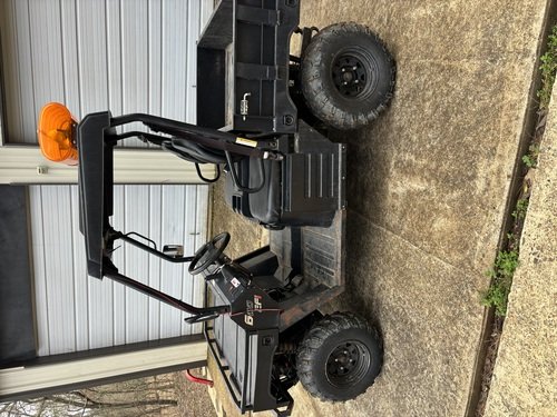 Steel front deck, electric tilt bed, winch power, steering headlights tail lights turn signals brake lights. Runs excellent. Will take guns and partial trade.