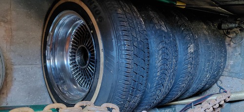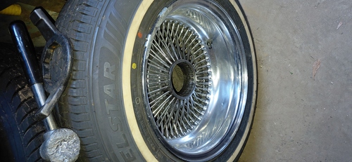 5 La wire wheels 100 spoke 5 lug universal tires are almost brand new 185/75/14 includes all center caps tool and hammer