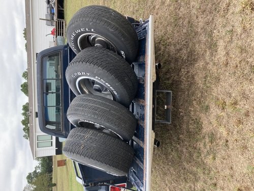 15” Wheel Vintiques Corvette Rally wheels. 2 are 15x8 and 2 are 15x10. 5 on 5 blot pattern. Was running them on 1987 GMC truck. Tires are 10+ years old.