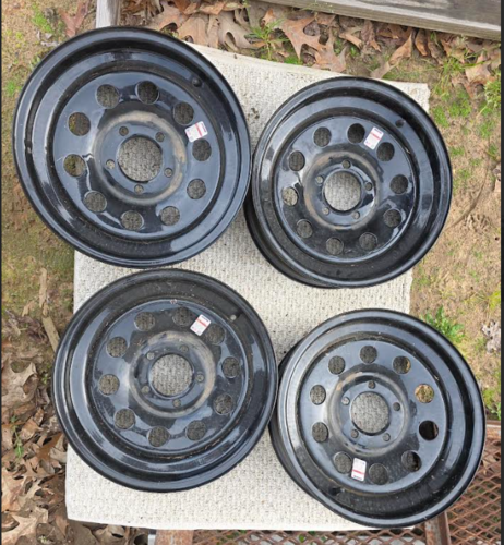Brand new 15" Trailer Rims . 4.5inx5 lug pattern. These rims are brand new and have never been used. Selling due to buying the wrong lug pattern. The pictures shown, show both the diagonal measurement and the side by side measurement. Call or text for any additional information. 870 686 2909