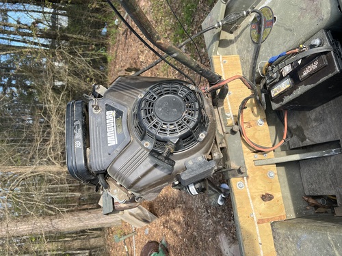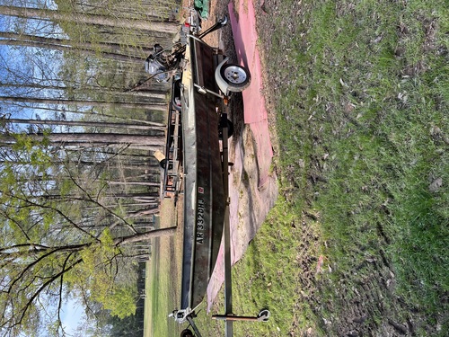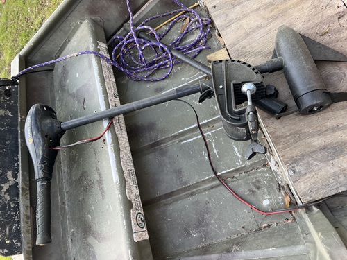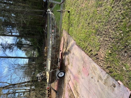 1436 John boat has green interior lights comes with 2 batteries a minnkota trolling motor and 6gallon gas tank mud motor is a godevil frame with 23hp vanguard engine runs great