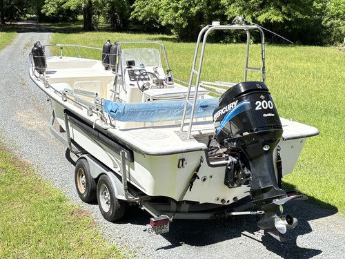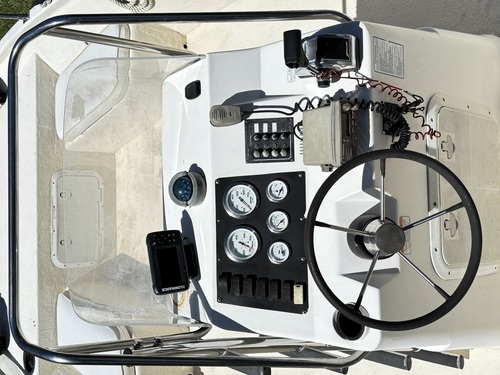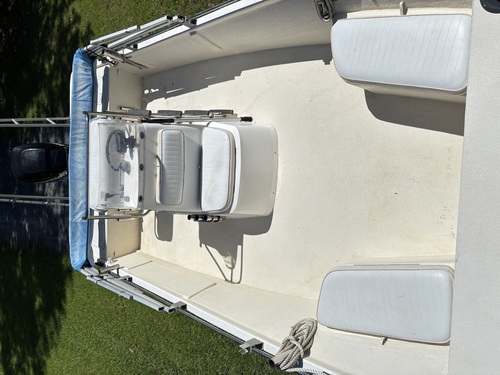 HAS BIMINI TOP, ALL NEW CONSOLE GAUGES, NEW DEPTH/FISH FINDER, MARINE TWO-WAY RADIO, REAR ALUM RACK FOR ANTENNAS/ETC, 2 ANCHORS W/ LONG ROPES, 2 LIVEWELLS, NEW BILGE PUMP, MANY OTHERS