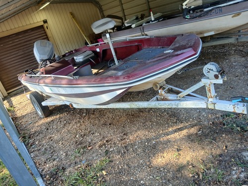 Bought it as a project Boat and just don't have the time. Clean title in hand. Previous owner said the motor ran when he parked it but I haven't taken it out. It has a brand new 3500 lbs axle under it and new fenders that I haven't put on yet.