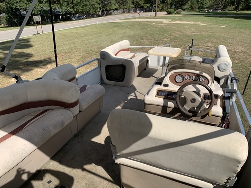2002 sun tracker 21 ft pontoon boat. Upgraded it to a 150hp Yamaha this summer. Runs good, motor was just tuned up at local marine. Aluminum bottom. Only issue with it is the gauges never got hooked back up after engine swap come with life jackets $7500 text 3one8two4five2eight75