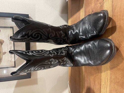Black leather. Men’s 12 wide. Good condition.