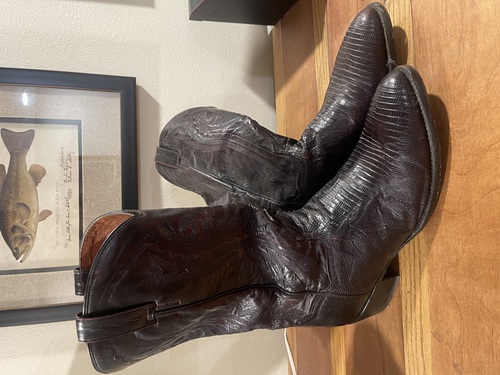Men’s Nocona lizard skin boots. Black cherry. 12 wide. Like new condition.