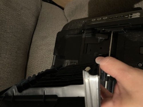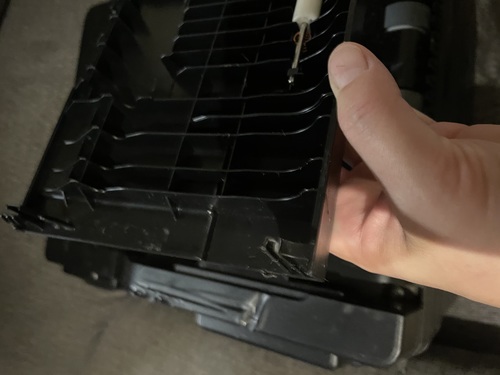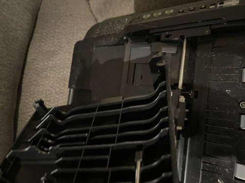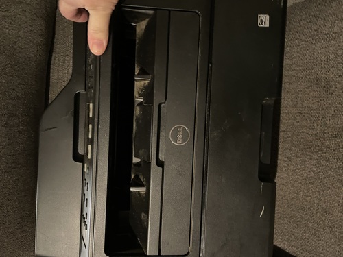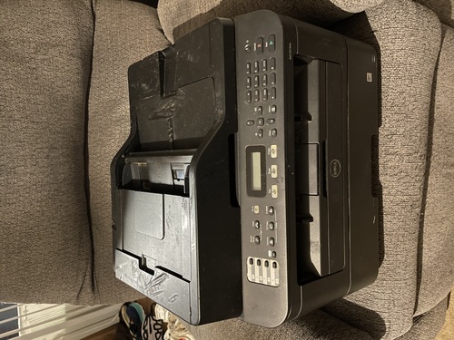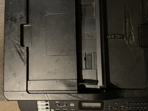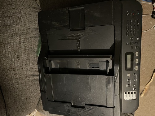 Printer works good. The tray on top is broke but with a little tape it can be be held in Place. There are some cosmetic issues as seen in pictures but the melted spots does not interfere with its printing