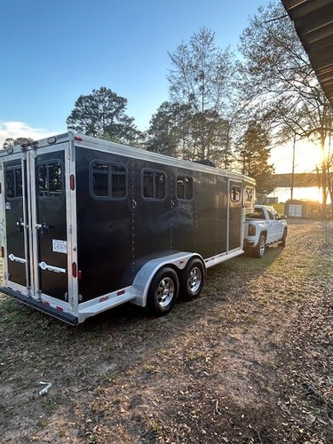 3 horse slant trailer with weekender pkg. Trailer includes water tank, air, factory mats, and modular stock pens. Tires and brakes are good. 1/2 ton truck towable rig.