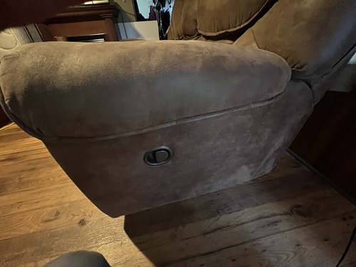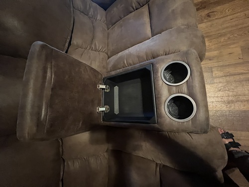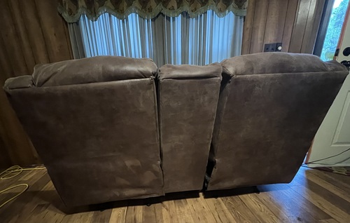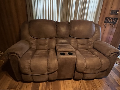 Love Seat with 2 recliners,storage compartment and 2 cup holders in middle of Love Seat. Pet friendly material-microfiber/microsuede. Easy to clean and desireable for households with pets.Good condition . No stains or tears. Pick up in Camden. Call or text only Cash only