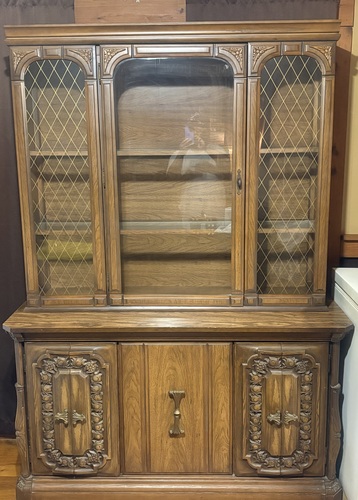 Lighted China cabinet.Top portion is removable. Top section measures at 45Hx49W. Bottom section measures at 31-1/2Hx54W. Need gone ASAP. Taking up valuable space. Serious inquiries only as I need this gone ASAP.