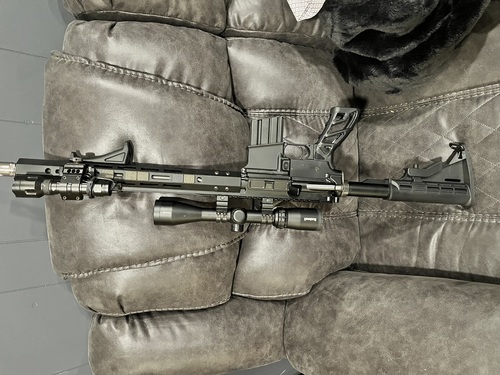 Brand new .450 bushmaster. Never shot it due to busy schedule. Stainless steel barrel with a few upgrades. Every thing goes except the scope.