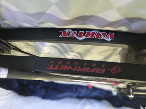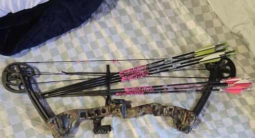 For sale Barnett Vortex compound bow with 7 arrows 3 of which are for hunting, no points on those
