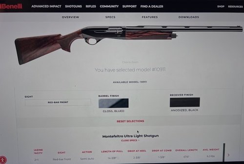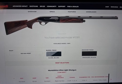 Like new Benelli Montefeltro Ultra Lite Shotgun 24 inch barrel, weighs 6lbs comes with all chokes, original case and paperwork. Stock finish is A grade satin walnut, reciever is anodized black, barrel finish is gloss blued, carbon fiber rib, factory red bar front dot, very few handling marks.