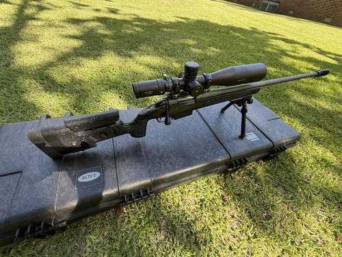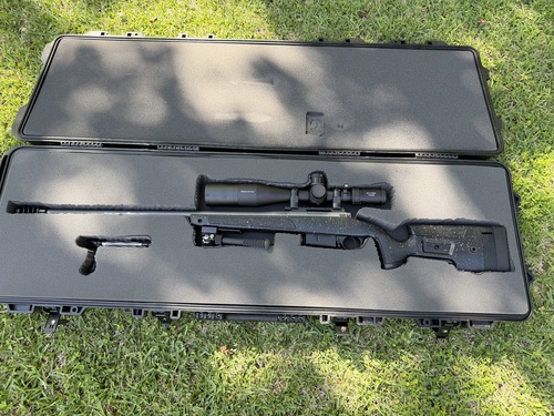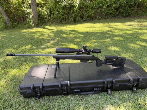 Bergara HMR Pro in 6.5 PRC. Included is an Arken EP5 Gen II 7-35X56, bubble level, Trigger Tech Diamond trigger, Atlas V8 bipod, area 419 rail clamp, Arca rail, Masterpiece Arms DN5 muzzle brake, and a heavy duty Boyt case. 125 rounds fired through gun. Extremely accurate. No trades.