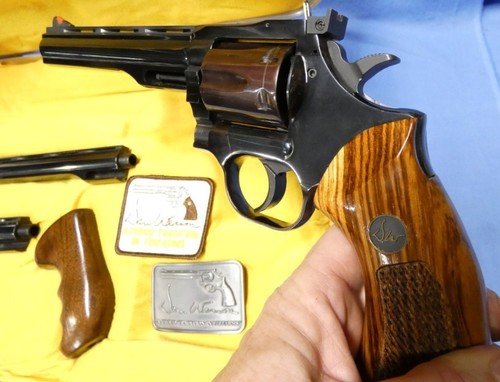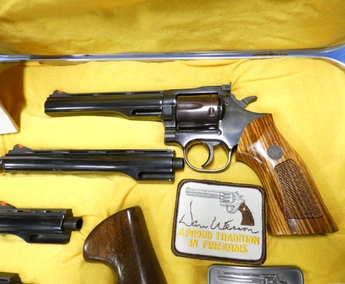 very nice Dan Wesson Pistol Pack in .357 magnum. This gun comes in it's original padded case, 4-barrels (1-2.5", 4", 6", 8"), tool and barrel gauge, extra set of smooth wood grips, tool, gauge, belt buckle, patch, instruction manual. This gun is in very good condition, timing is right on. TEXT me
