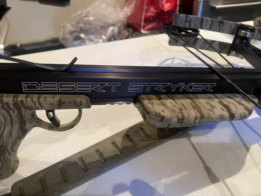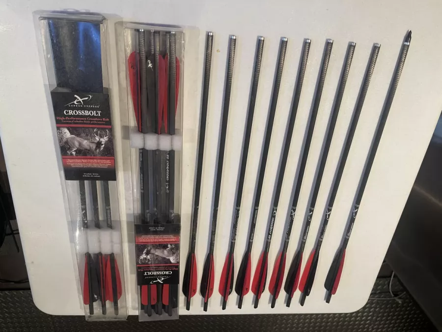 Brand new. Fired 6 bolts at target. Then sat in my safe. 3 arrows in a loonie size hole at 25 yards. Blistering speed 390+ fps through my chronograph,I paid 1125 for crossbow, 325.00 for 18 Carbon Express cross bolts, Quiver 85.00, 270.00 for the Excaliber Tact Zone Illuminated scope, 60.00 for th