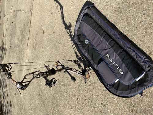 Elite impulse 34, 70lb draw, new strings, trophy ridge react 1 pin, b-stinger stabilizer, and elite soft case