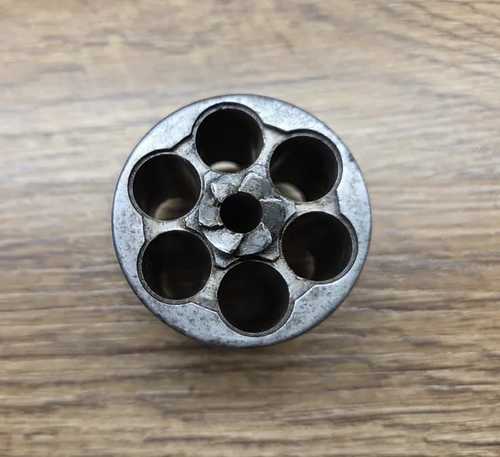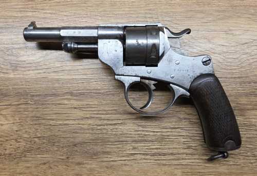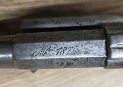French Model 1873 Service Revolver, manufactured in 1876, barrel is 1892 dated as it was refurbished in that year with a new barrel, 4.5" barrel, 6 shot. This example is chambered to accept 45ACP low pressure handloads as well as 455 Webley. Many of the French 1873's had their cylinders lightly mach