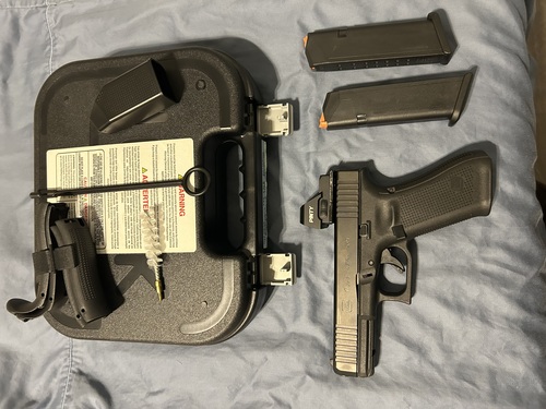 Glock17 Gen 5 with Red Dot , like new less than 100 rounds fired. Has original box, 2 17 round magazines and all Glock paperwork.