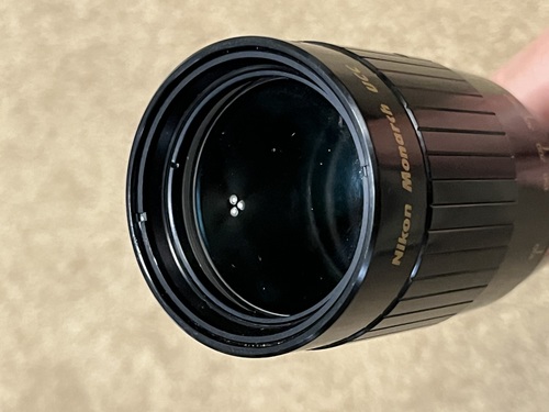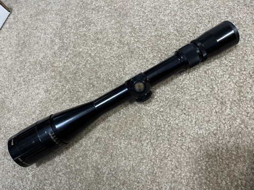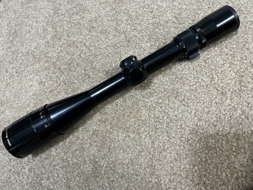 Very good condition gloss finish Nikon Monarch 4-12x40AO made in Japan with duplex reticle. Pics show the only two marks I can find. Might trade for other scopes with duplex, #4, or simple BDCs.