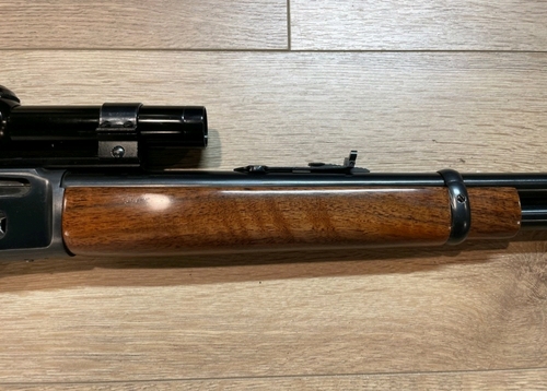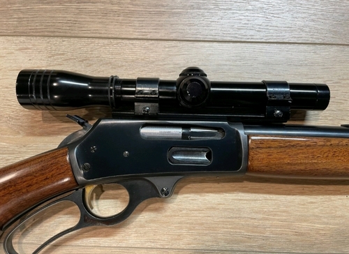 Marlin 336 .35 rem gold trigger. Chambered in .35 remington. This is the golden trigger edition with nicer wood than the standard model. Firearm comes with a Redfield 2 power wide view optic. Firearm is in overall good condition with limited handling marks.