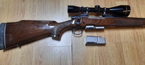 Engraved receiver Remington 700 BDL gloss, Leupold VX II 3 - 9 x 50 scope, 16 boxes of ammo, DM (detachable Magazine) with 2 mags. Not interested in trades.
