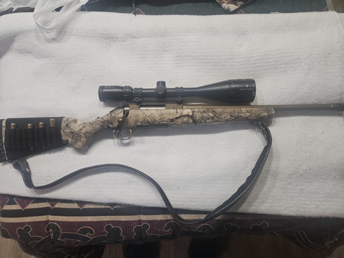 Like new (treaded) and comes with Scope and 2 boxes of shells. This gun has plenty of knock down power for deer or hogs, but gentie enough for a woman or a youth.