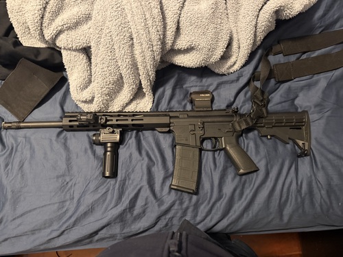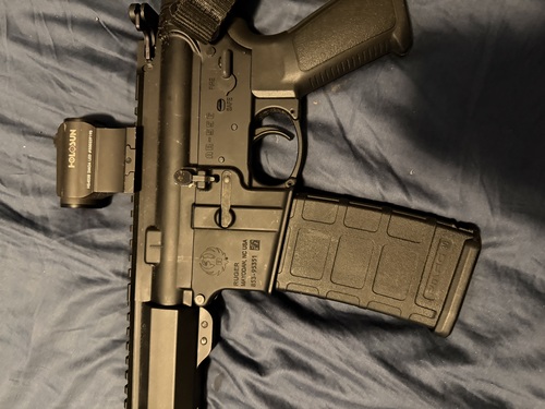 Ruger AR-15 with Holosun Red Dot. Tactical sling. Flash light and laser. Bought 3 years ago. Fired on range twice. Less than 100 rounds total. Complete set up cost over $1700. $1000 firm
