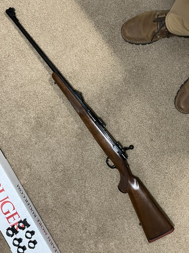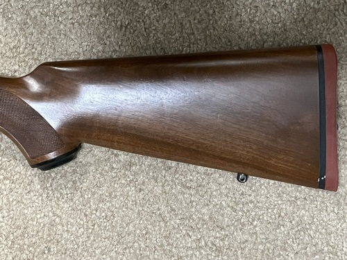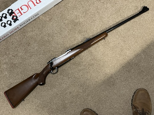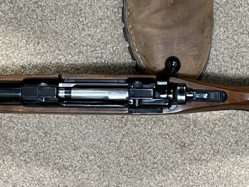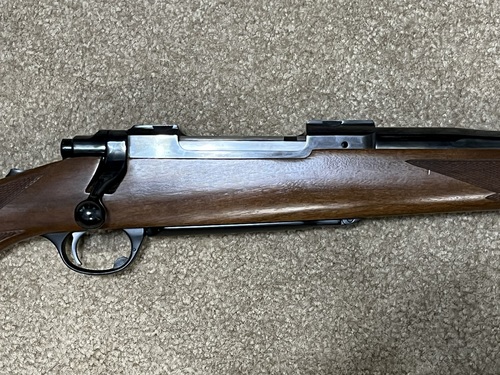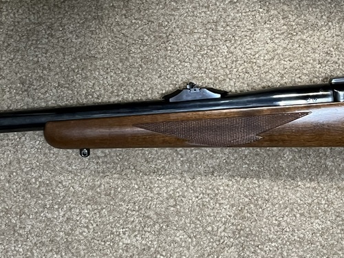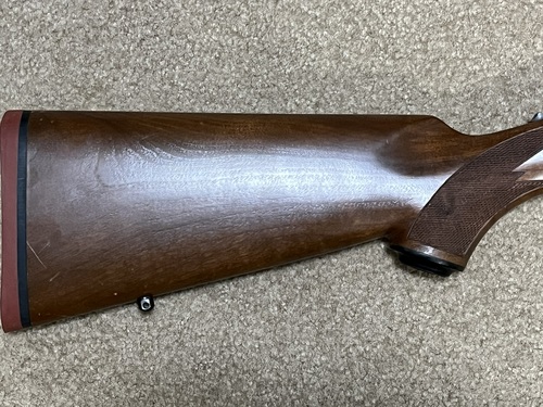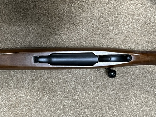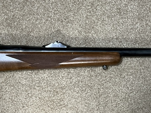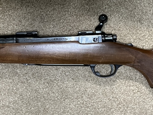 Very nice Ruger M77RS (iron sights) in .25-06 Rem. Rare & hard to find caliber with the iron sights. Has usage marks on stock & some bluing loss at the muzzle, probably from riding muzzle down in a vehicle. Per serial number it was manufactured in 1982. Can text original pics.