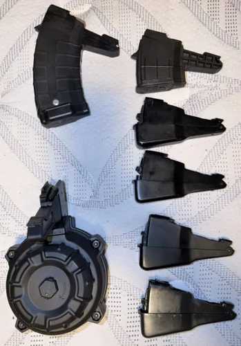 Russian Tula factory 1952 SKS hush holsters folding stock w/original box Factory stock Laminated stock Leather butt shell holder Leather sling shell holder 1 Russian Factory pinned internal mag 3 Chinese pinned internal box magazines 1 - 5/48 pinned drum magazine 1 - 5/20 round magazine 1 - 5 round