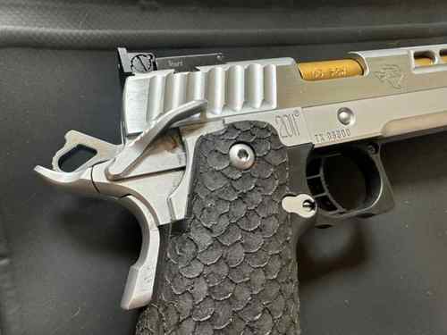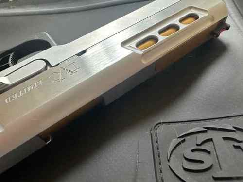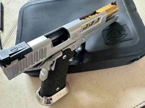 TEXT/CALL: (479) 999-7320. Rare STI DVC with gold tin island barrel, 2011 40mm. Super accurate, light recoil, flawless performance. Looks even better in person. Comes with two mags. Selling off collection, no trades.