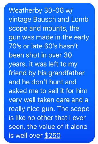 Late 60’s early 70’s Weatherby 30-06 Like new, with vintage scope and mounts. $950 OBO 870-833-0650
