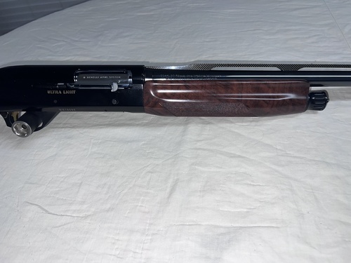 Like new Benelli Montefeltro Ultra Lite Shotgun 24 inch barrel, weighs 6lbs comes with all chokes, original case and paperwork. Stock finish is A grade satin walnut, reciever is anodized black, barrel finish is gloss blued, carbon fiber rib, factory red bar front dot, very few handling marks.