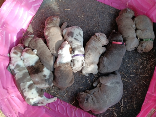9 boys, 3 girls in all. Some are natural bob-tailed, some glass eyed, blue, green and brown. Wide range of leopard colors, blue, gunmetal, light and dark patch. Loyal intelligent dogs. Parents pictured. Great hunt, truck or yard buddy. Strong Louisiana bay/catch/hunt lineage.