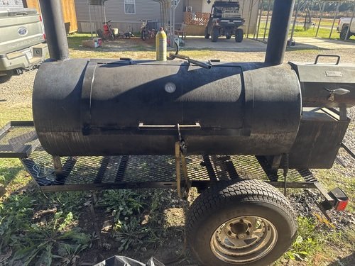 It’s a big cooking space you can grill are smoke on it . Has a wood box built on trailer. Good tires, lights work