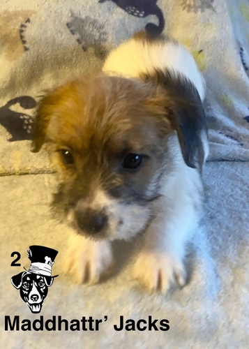 Call or message for info can also video chat or do meet N greets with pups! All pups vetted & microchipped, dewormed regularly, come with 1st and 2nd set of puppy vaccinations! 8weeks old 💙🩷 @Maddhattr Jacks on facebook Potty trained useing pelt box Parents Genetic tested & clear! Temperament tested lines! At Maddhattr’ Jacks all pups are raised in our home socialized with small children, adults and other pups/dogs the perfect companion. we strive to produce all around Russell Terrier(short legged jack russell terrier) from the Dove fields to in the woods blood trailing deer to hunting squirrels or Hogs!