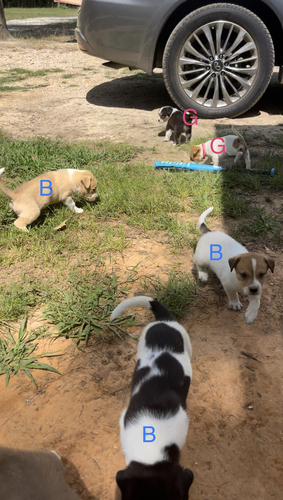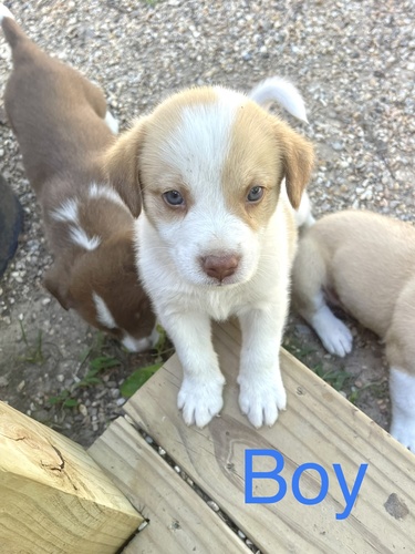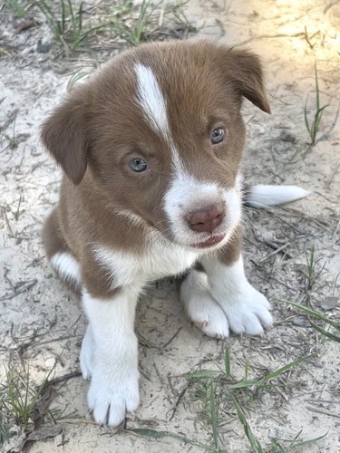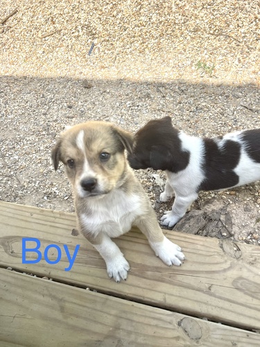 Mom is our full blood red Australian shepherd. Dad is a blue heeler mix from up the road. We have 6 boys/3 girls. Born May 8 and ready to go.