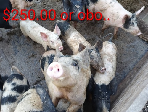We have about 17 Mid Size Hampster and Chester White Pigs for sale for $250.00 right now. As they grow the Price will go up. The Smaller Pigs which are about 3 Weeks old are $150.00. We will sale while they are om mother but you have to bottle feed for a few more weeks.