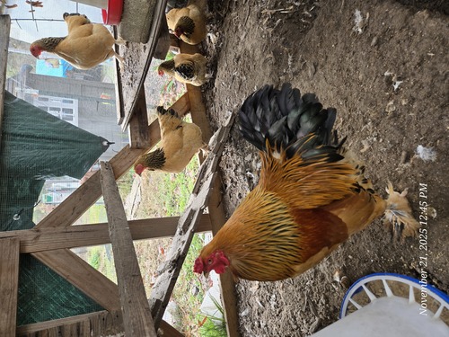 A beautiful rooster and his 4 little hens. I will sell only as a group pet's