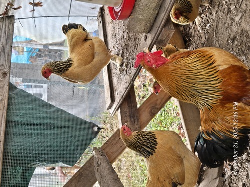 This is a sweet little bantam brahma family. They are a little over 2 years old and have been together since birth. There is