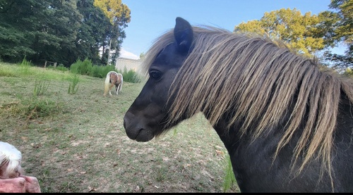8 year old stud. Chocolate palomino. Was told fully broke. Will lead line...kids have rode. Very gentle. Easy to handle.