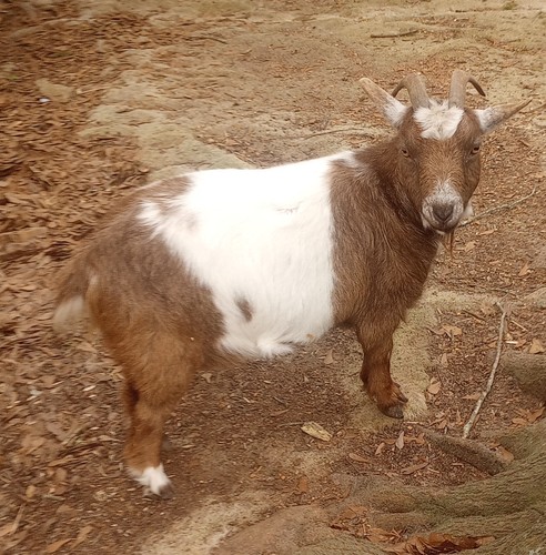 Dwarf goats must go together. Brown and white is around 3 and cream with blue eyes is a little over a year. Hardy ladies have rarely needed worming and have never needed extra supplements other than their free mineral. Can answer additional questions if you text/call.