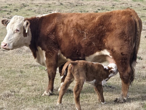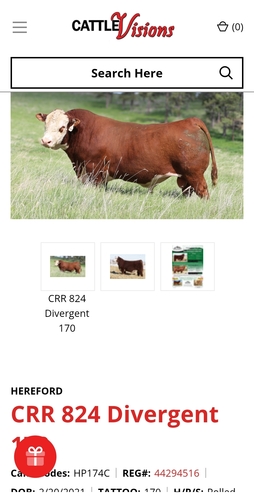 Cow almost 5 yrs old. Cow ai'd first stick, last 2 calves. Easy keeper. Pedigree in pictures. Calved Feb 20. Bull calf is low birth weight, out of CRR Divergent. Sire pic attached. Calf will make a good herd bull one day.