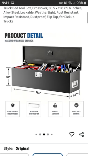 New never been used still have the box it came in Truck Bed Tool Box, Crossover, 38.5 x 11.6 x 9.6 Inches, Alloy Steel, Lockable, Weathertight, Rust Resistant, Impact Resistant, Dustproof, Flip Top, for Pickup Trucks