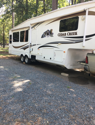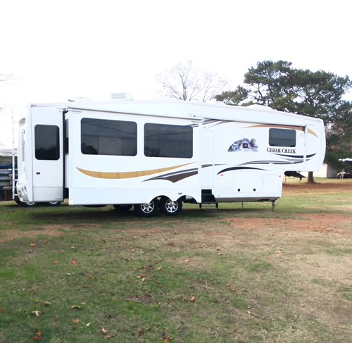 2011 Cedar Creek Made by Forest River 34’ 3 Slides, washer / Dryer Hookup, Fireplace, King Size Bed and more. Text eight seven 0 five 71 five 6 six one