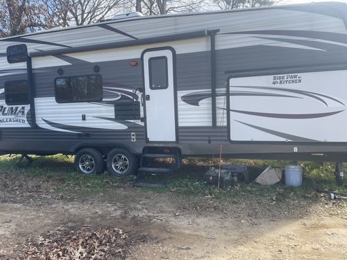 15 puma toy hauler 2 bed 1 bath big enough to pull side by side in minor wear and tear has a outdoor kitchen on hand generater asking 9000$ open to some trades call for more info 318-578-5173
